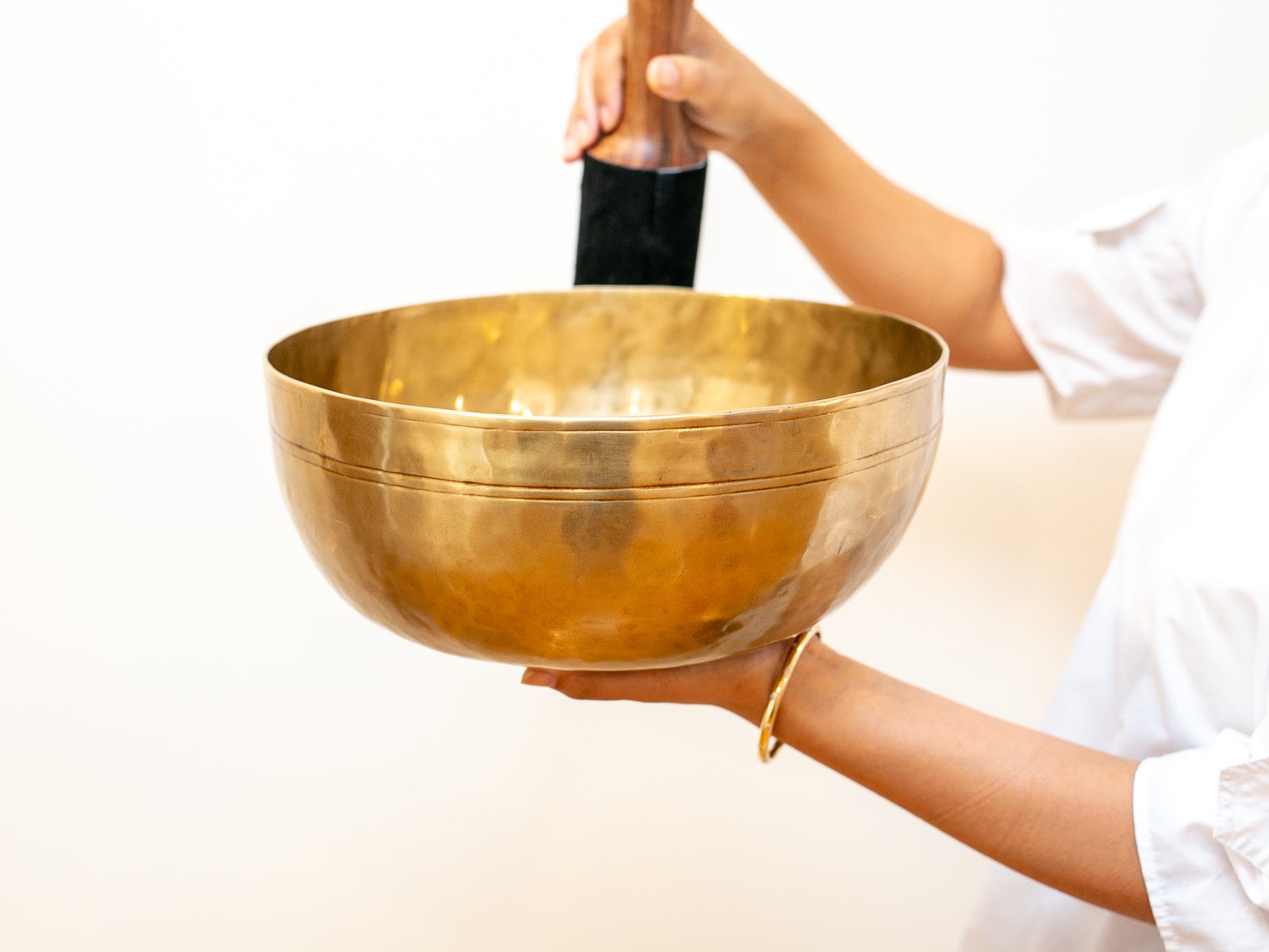 All our singing bowls are sold as is and come with a free playing mallet. We would suggest purchasing a ball mallet separately with this bowl