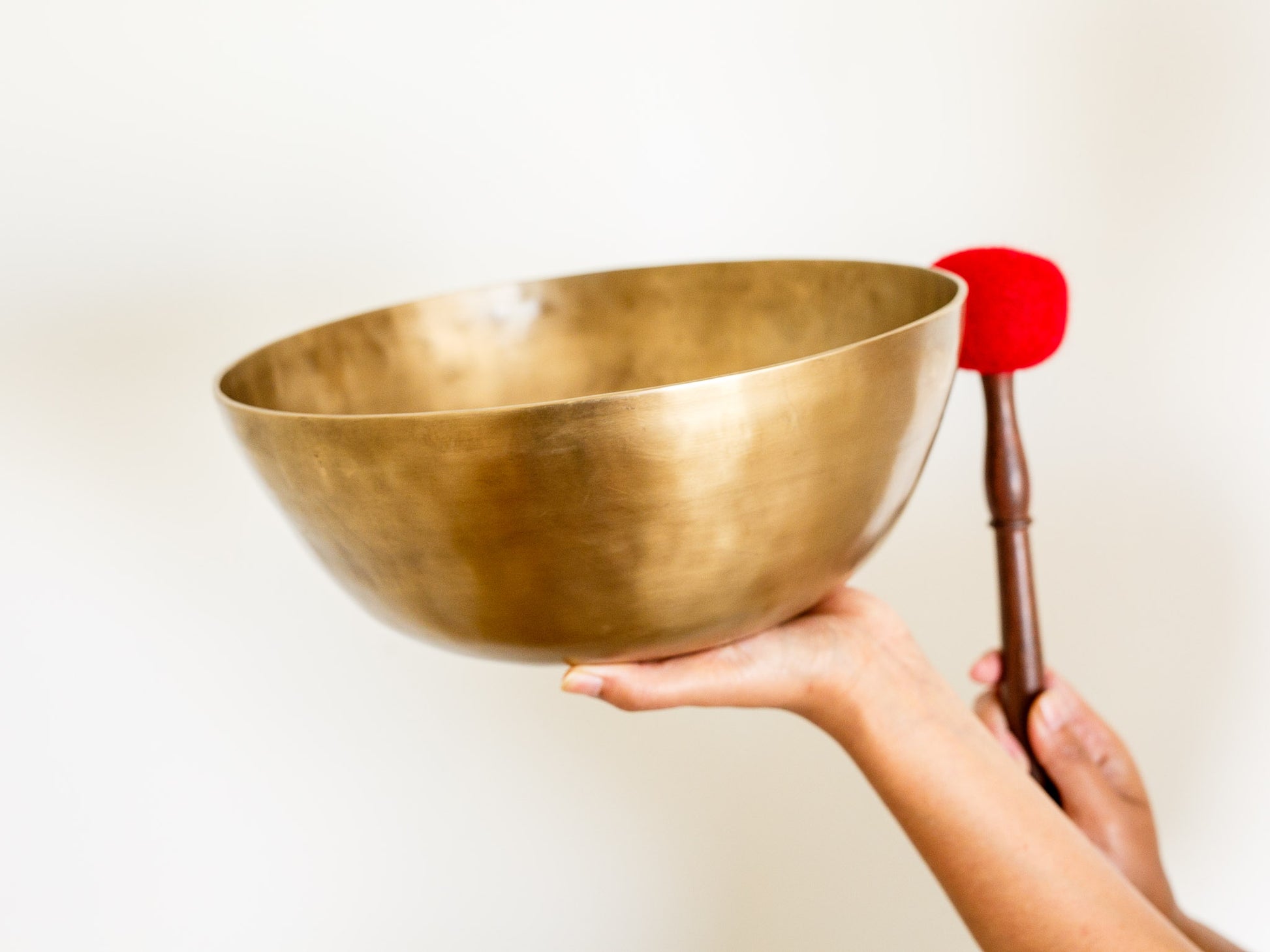 Our head therapy bowls have a low sound and thinner walls, making them relatively lighter. They sound best when struck with a ball mallet, which brings out the lower fundamental.