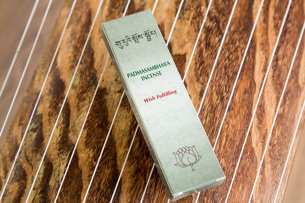 Padmasambhava incense is entirely handmade and amongst its many ingredients are sandalwood ,medicinal herbs and precious stones such as turquoise ,coral and gold.This incense is specially offered to Guru Padmasambhava during prayers when we request him to fulfill our wishes.This incense also helps to protect us from negative energies.