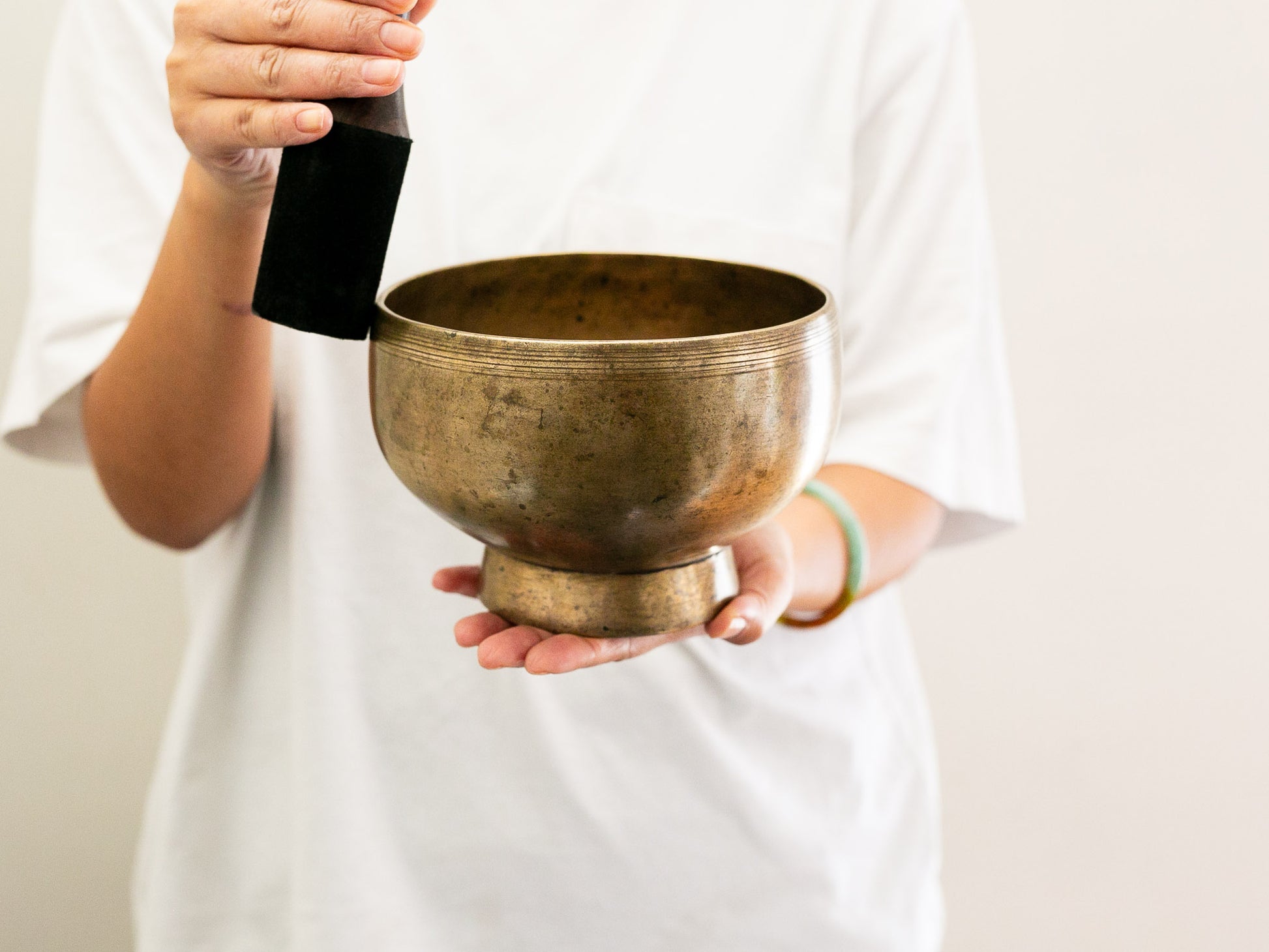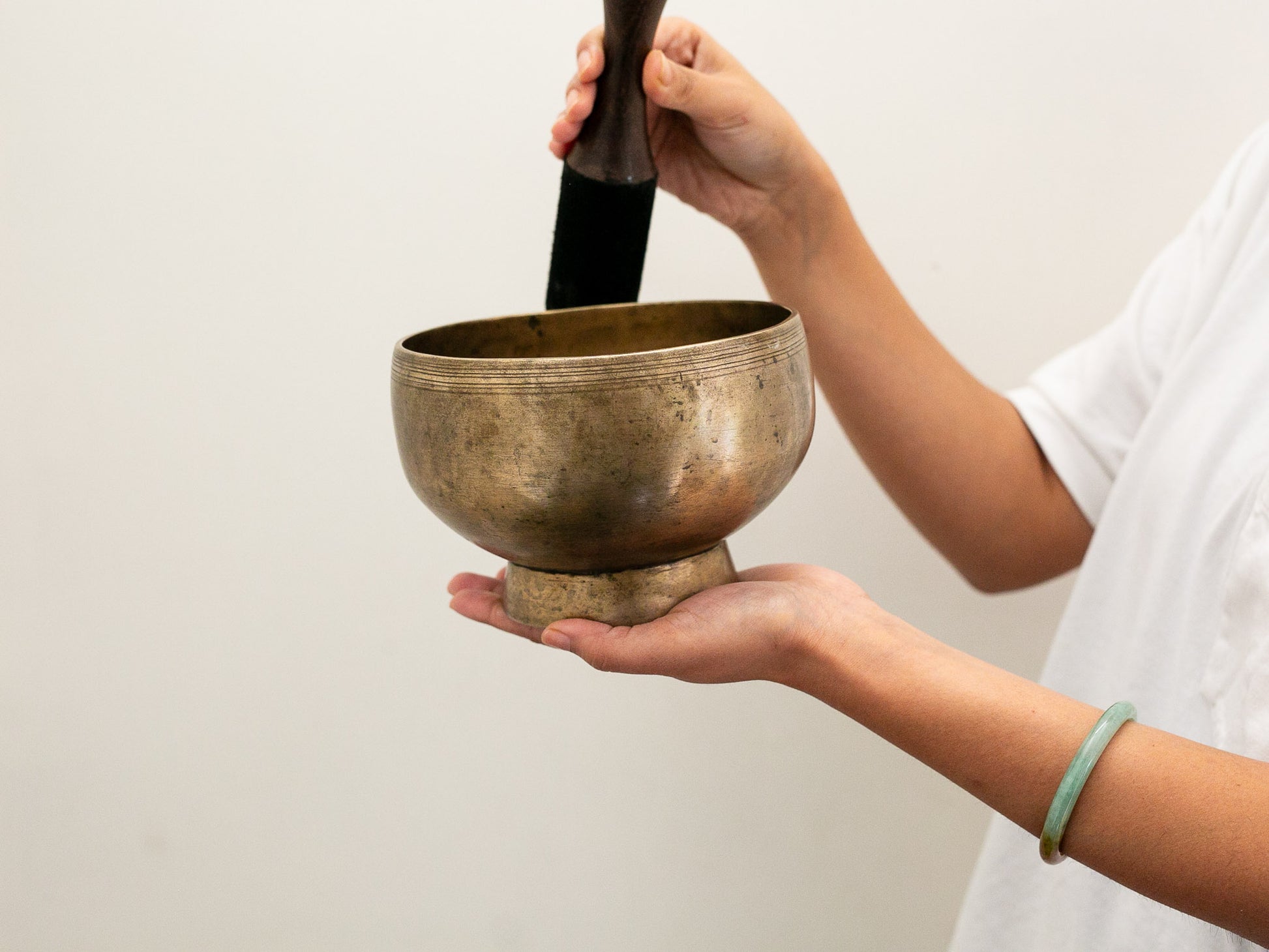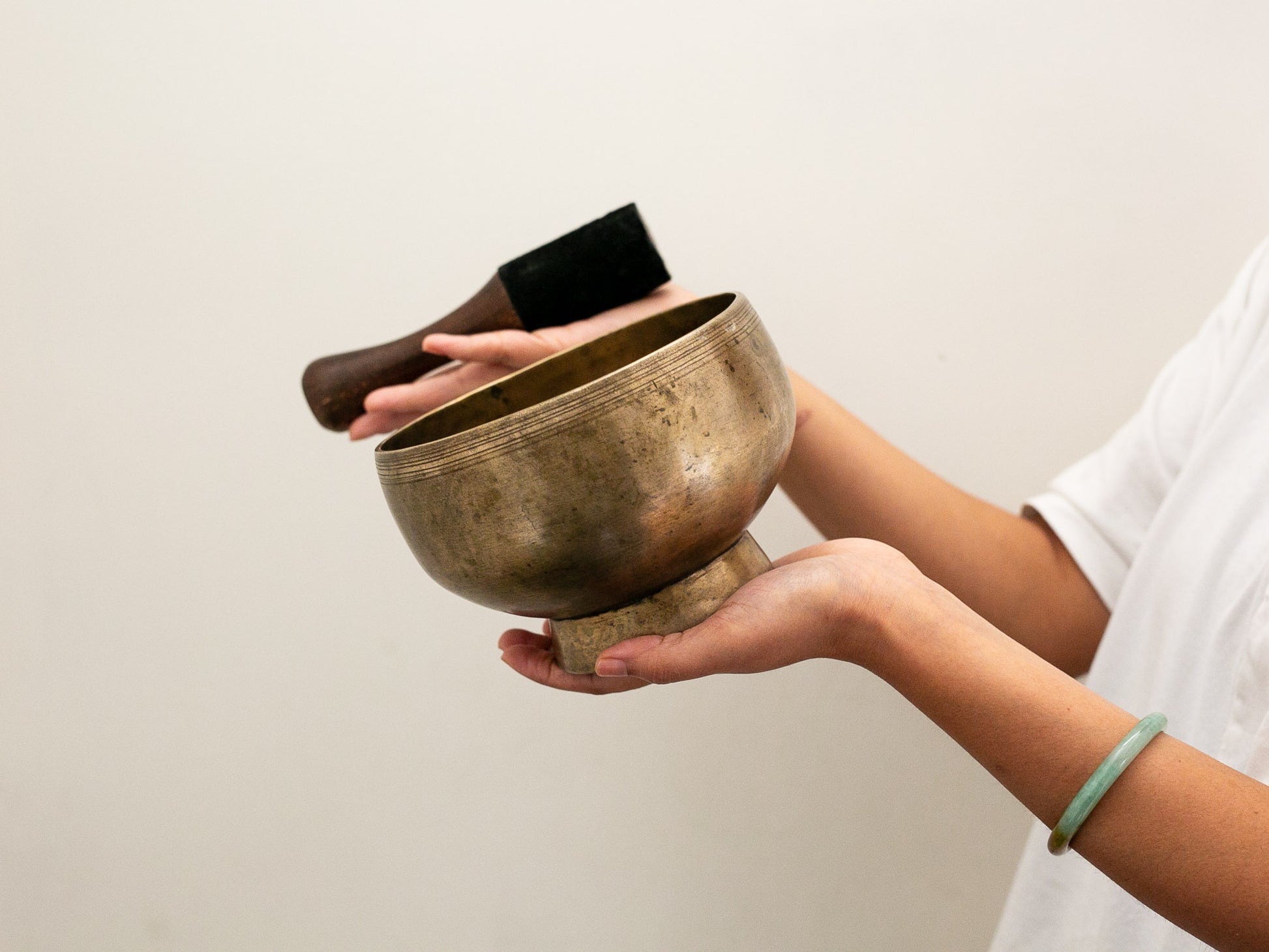 Originating in the Himalayan region, Naga or pedestal singing bowls are the most unique from all Tibetan Bowls. They are made up of two distinct parts: one is the usual round singing bowl whilst the other is the stand that the bowl has been fixed to. Therefore it is the only type of singing bowl that can be held and moved around the body or around the space. These bowls feature minimal inscriptions or artwork, and were probably used during shamanic rituals and ceremonies.