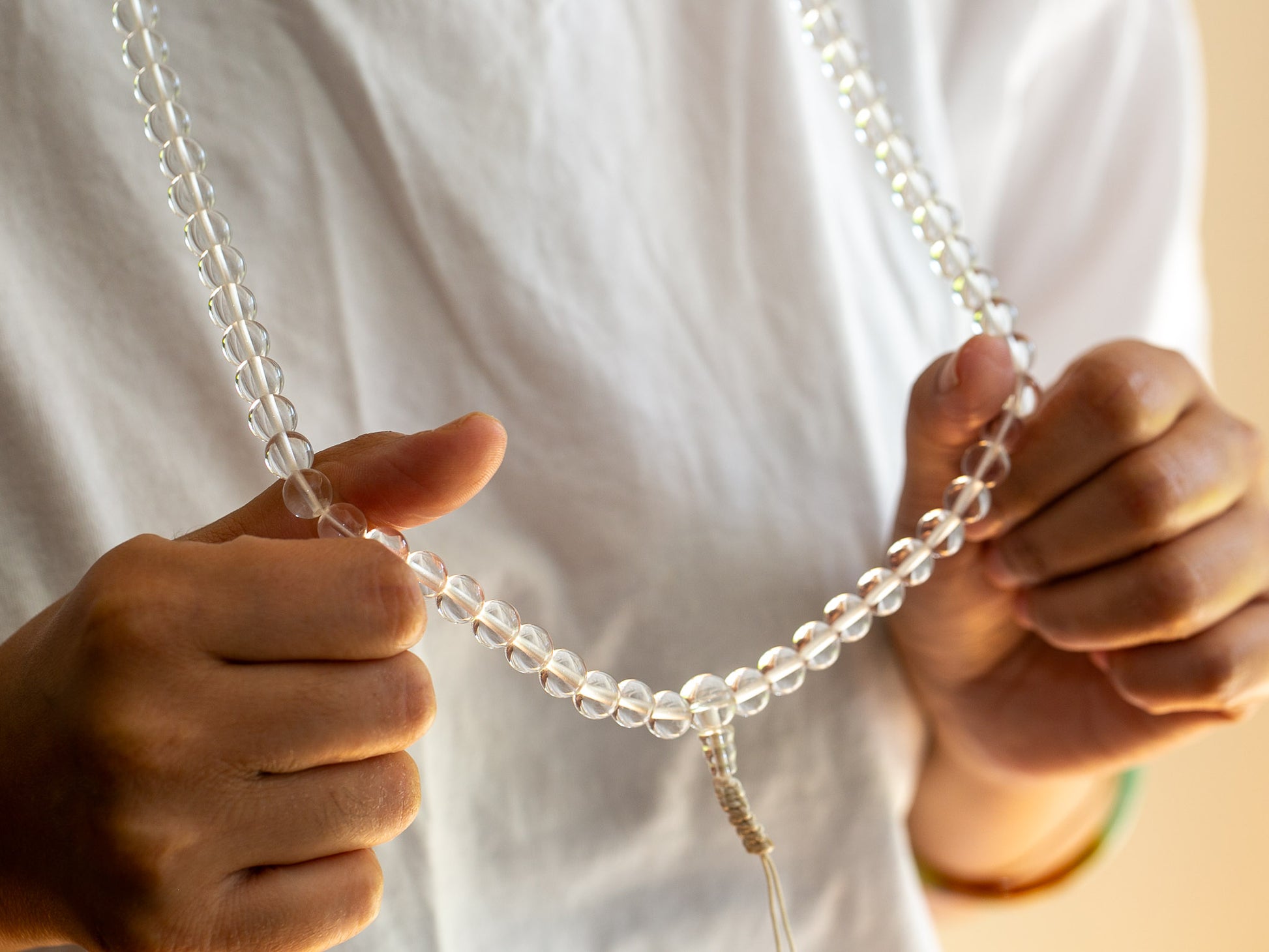 Many of customers also love crystals and working with energy. Introducing our new Himalayan Quartz Crystal mala. This mala is made from A grade Himalayan quartz crystal with fantastic clarity and smoothness. This 108 bead mala is available in a choice of two sizes: