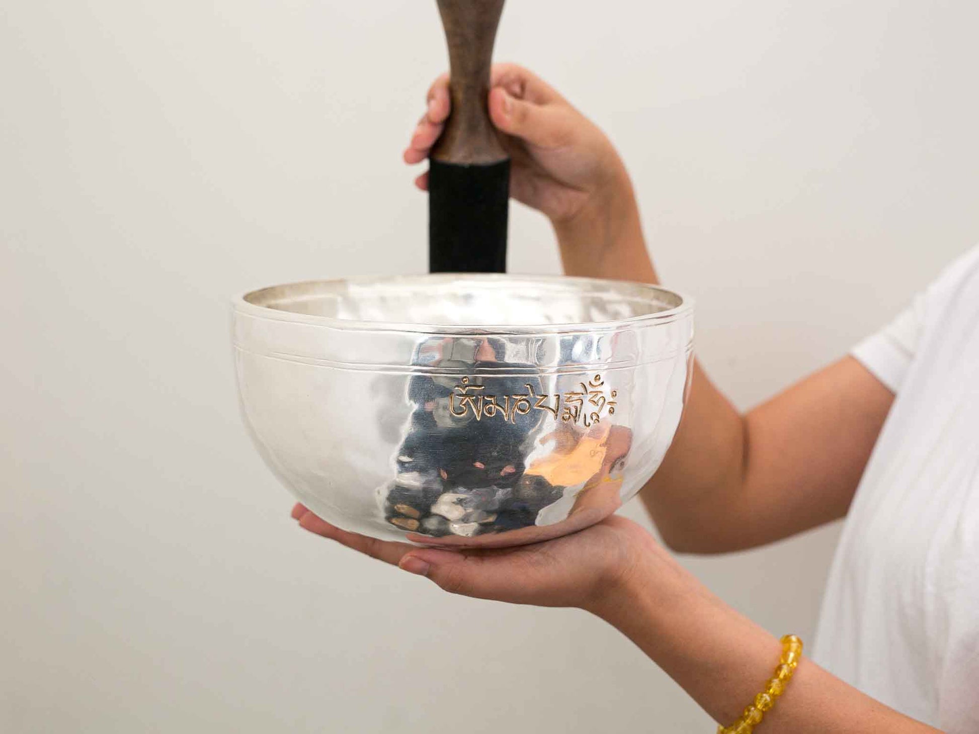 Every Silver Moon Bowl has been individually played and selected by us. Most are engraved with the Tibetan compassion mantra Om Mani Padme Hung and marked with the symbol of the artisan’s workshop. All our silver moon bowls are provided with a free hardwood ringing stick, cushion and cotton bag for safe keeping.
