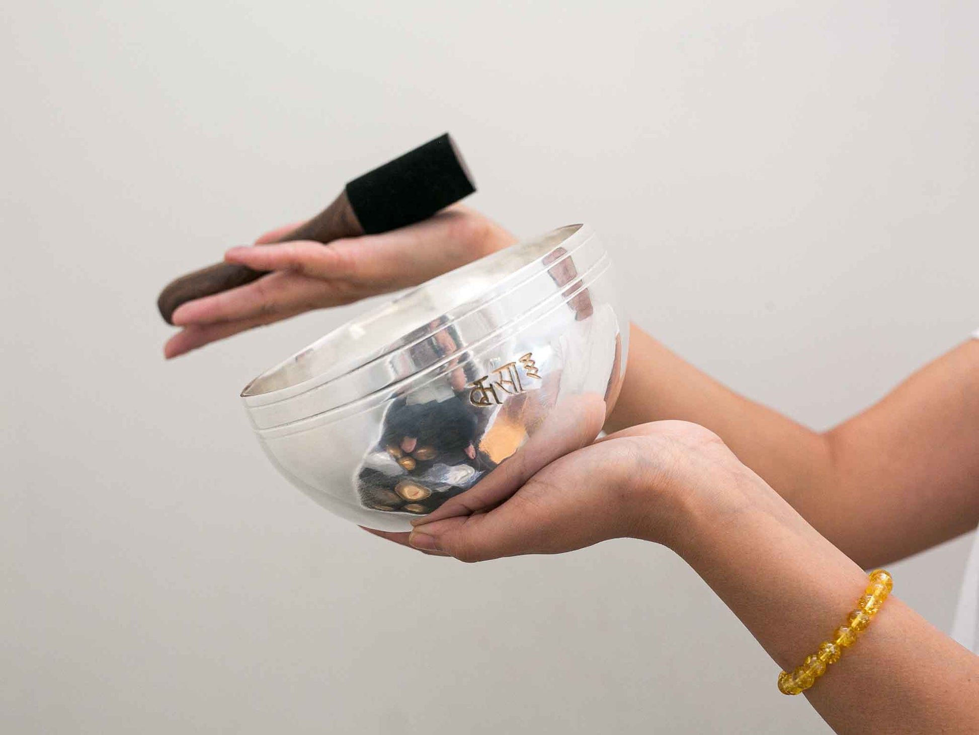 Every Silver Moon Bowl has been individually played and selected by us. Most are engraved with the Tibetan compassion mantra Om Mani Padme Hung and marked with the symbol of the artisan’s workshop. All our silver moon bowls are provided with a free hardwood ringing stick, cushion and cotton bag for safe keeping.