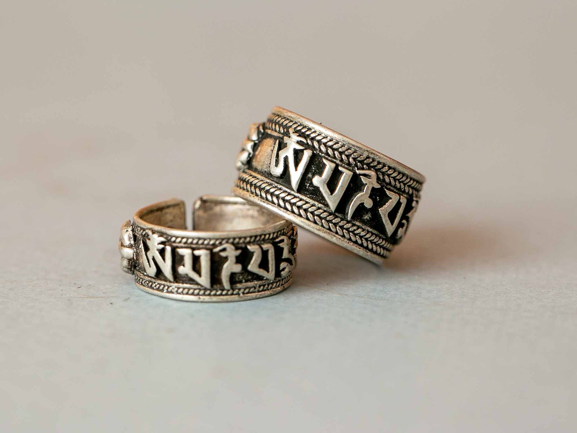 This beautiful and simple ring is made of Silver with Mantra of the heart and compassion OM MANI PADME HUM.