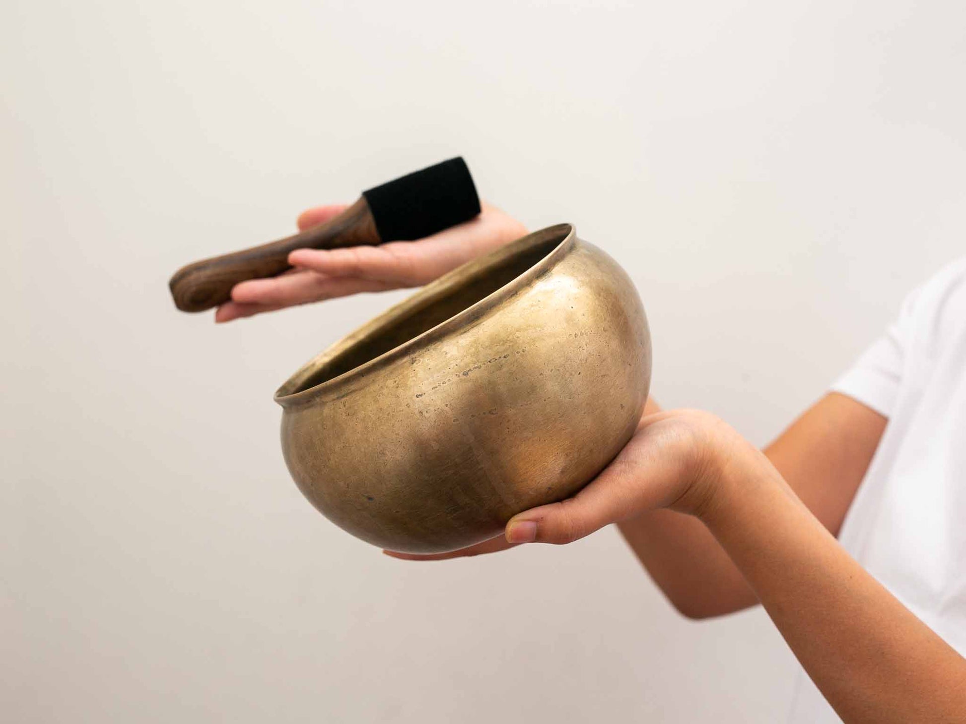 When played, this bowl rings out loud and clear, and fills the room with its pure tone. Such a bowl can be used in sound baths and when working on the body during therapy/healing sessions.